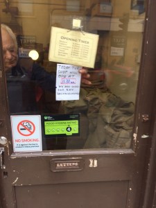 It is quiet at the Newsagents and finally the Hindu gentleman left in charge on New Year’s Eve has time to ask me, “Are you married? Do you live here?” and more. We take the time he needs as I answer the questions that he may have held for the past ten years of our fifteen year time in the village. Finally another customer comes to the counter and we exchange a newspaper for coin and part. “Happy New Year.” “And to you too.”
