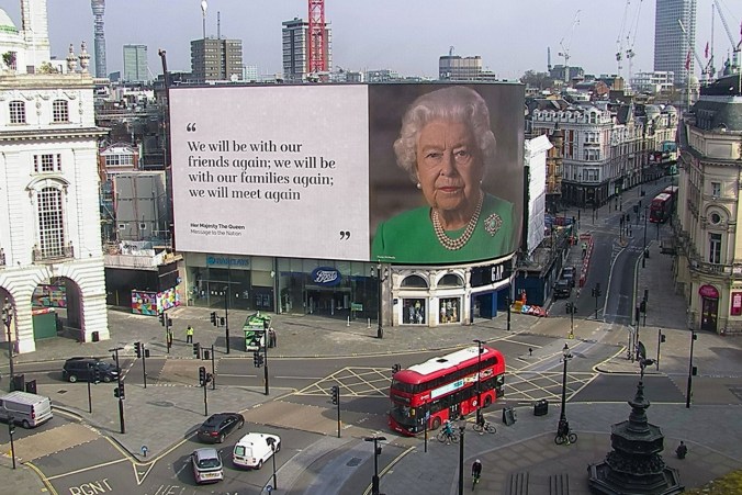 But when we can look beyond this government for a moment, the unnecessary pain they have inflicted and towards a bigger picture we can take some comfort and resolve from a billboard high up in Piccadilly Circus where our captured Queen is pictured. Steadfast as always she is telling us that one day we will be with our friends again, we will be with our families again; we will meet again.