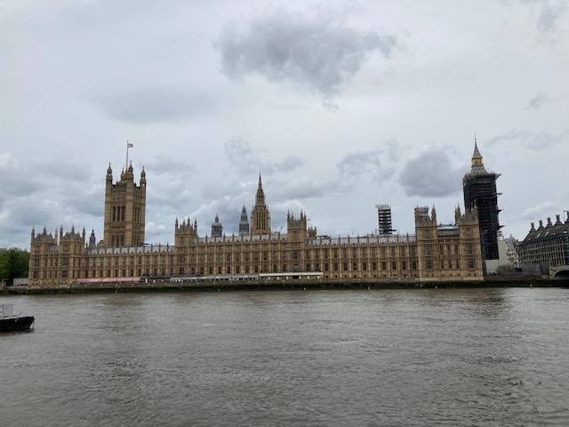 We walked past the London Eye, looking so huge from the ground, and then under the Westminster Bridge through to the “Wall of Hearts.” Painted on the wall that surrounds St. Thomas’s Hospital it faces the river and the Houses of Parliament. Organized by Matt Fowler, whose father died from the virus, each heart is for another death. To date over 128,000 lives have been lost in the United Kingdom. The 150,000 hearts already painted will be used up soon enough as family members continue to come and write, commemorating the names of their beloveds in all the languages that make up this country.